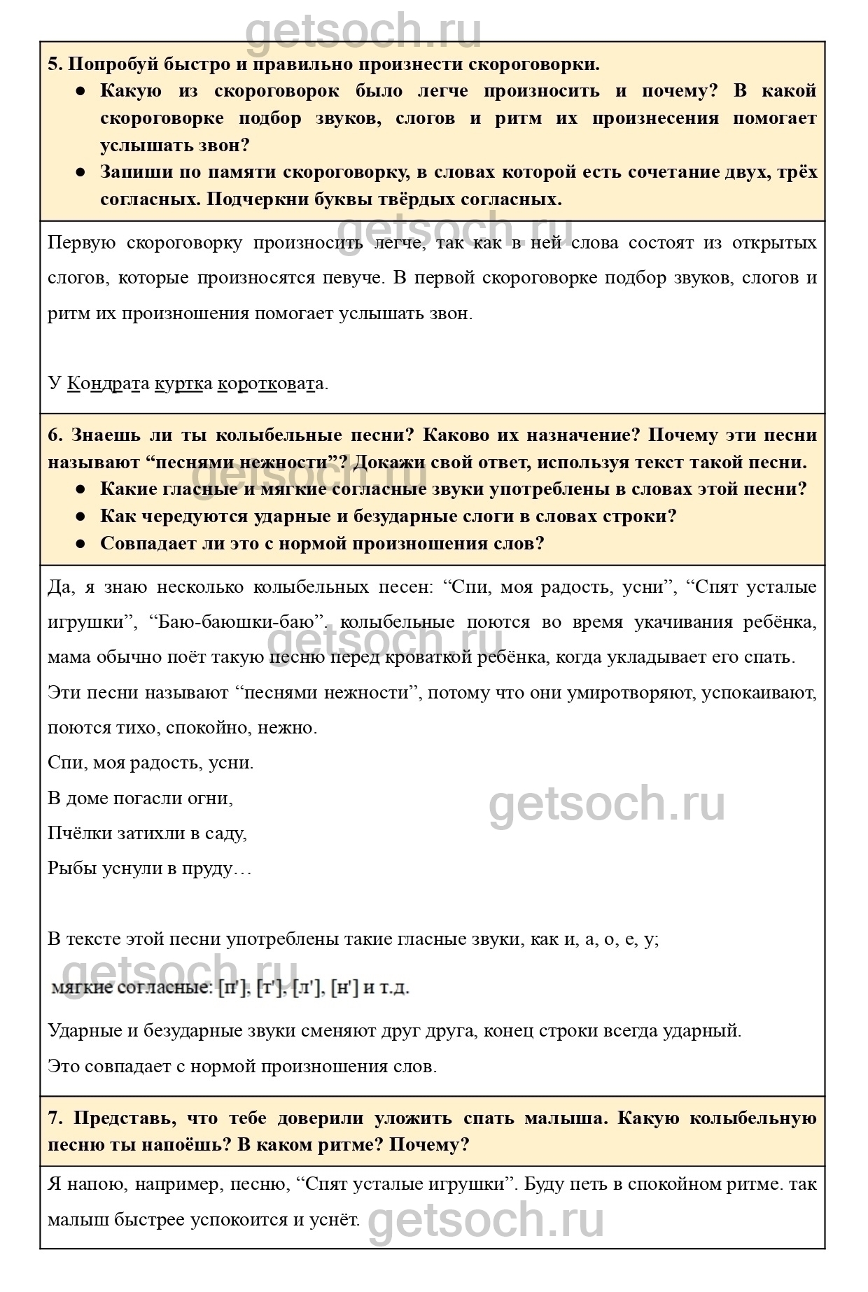 Какую из скороговорок было легче произносить и почему? В какой скороговорке подбор звуков, слогов и ритм их произнесения помогает услышать звон?