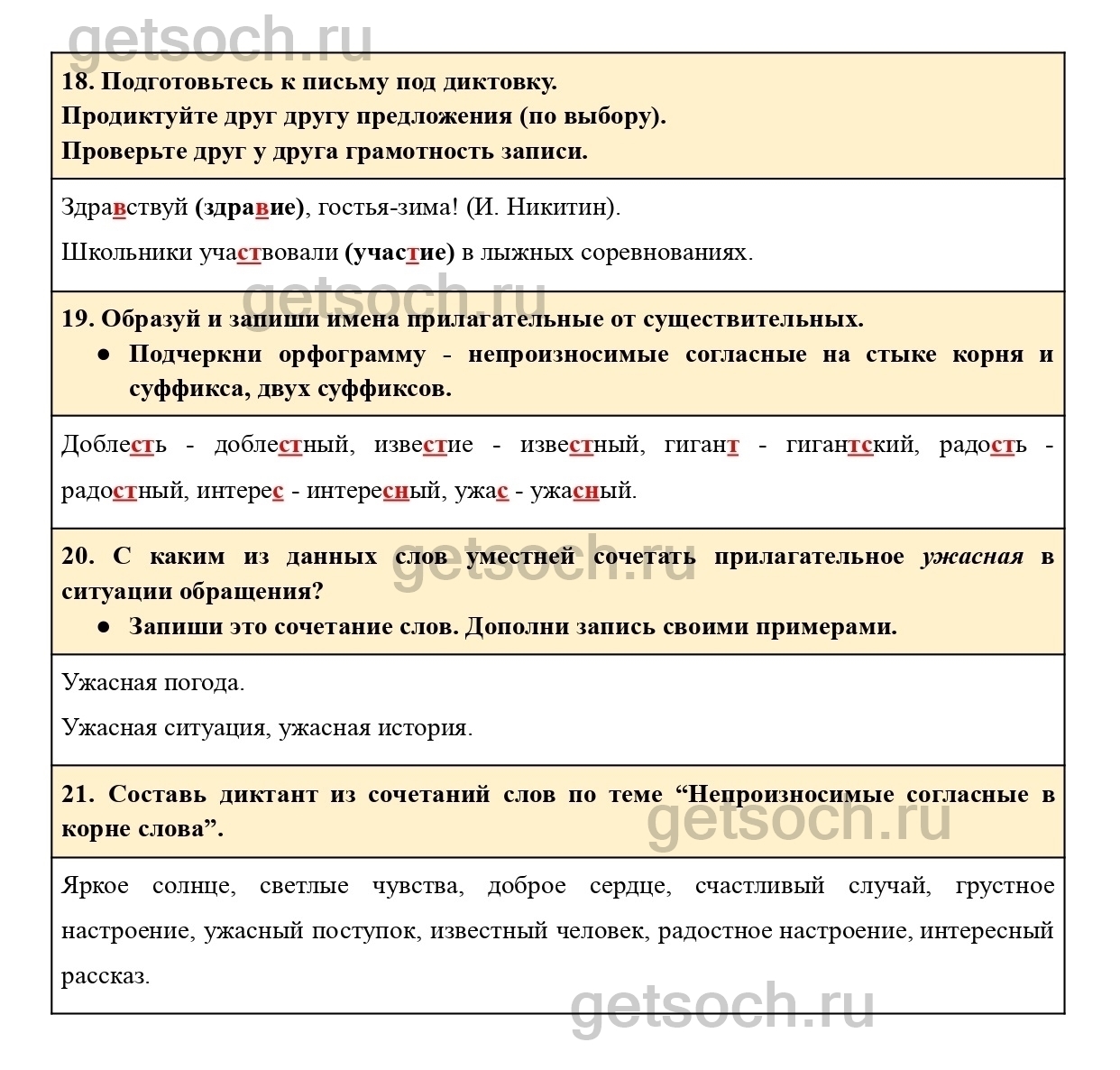 21. Составь диктант из сочетаний слов по теме “Непроизносимые согласные в корне слова”.