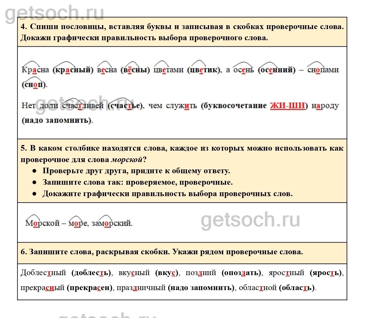 4. Спиши пословицы, вставляя буквы и записывая в скобках проверочные слова. Докажи графически правильность выбора проверочного слова.