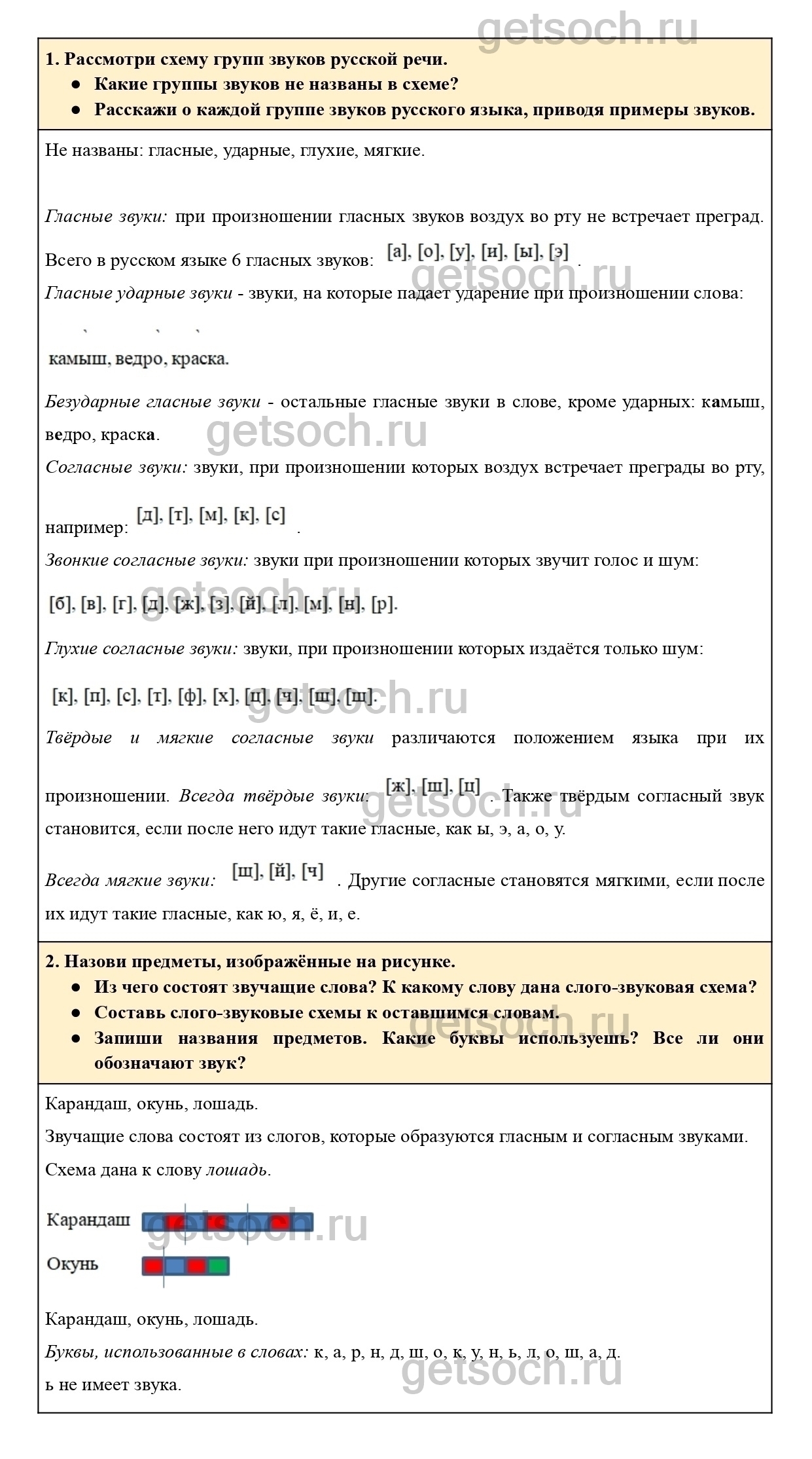 Запиши названия предметов. Какие буквы используешь? Все ли они обозначают звук?”