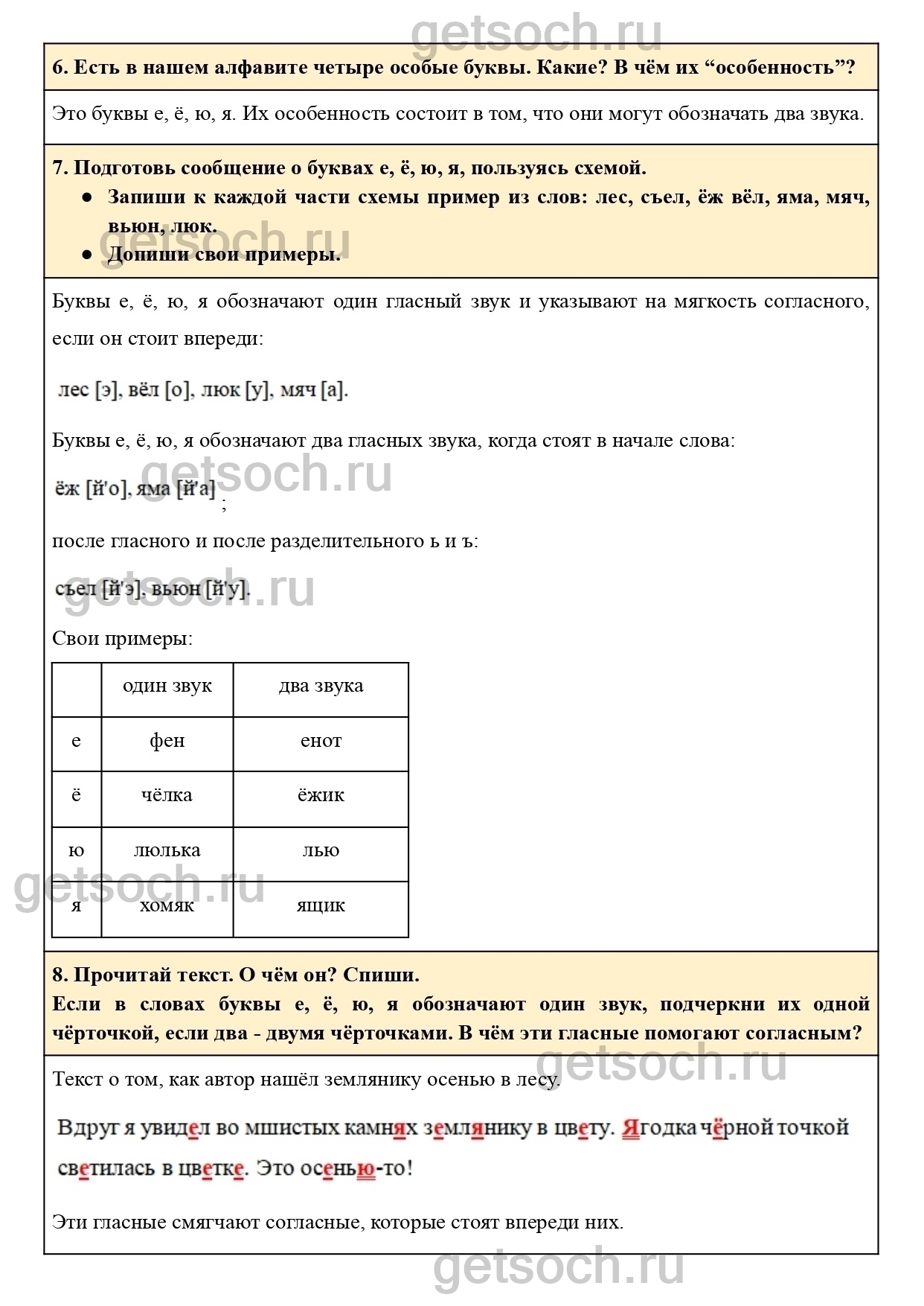 “7. Подготовь сообщение о буквах е, ё, ю, я, пользуясь схемой.