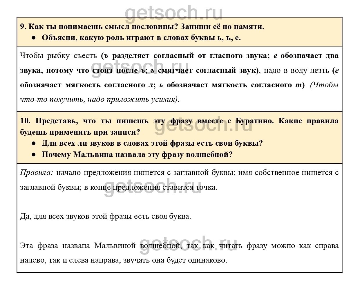 “10. Представь, что ты пишешь эту фразу вместе с Буратино. Какие правила будешь применять при записи?