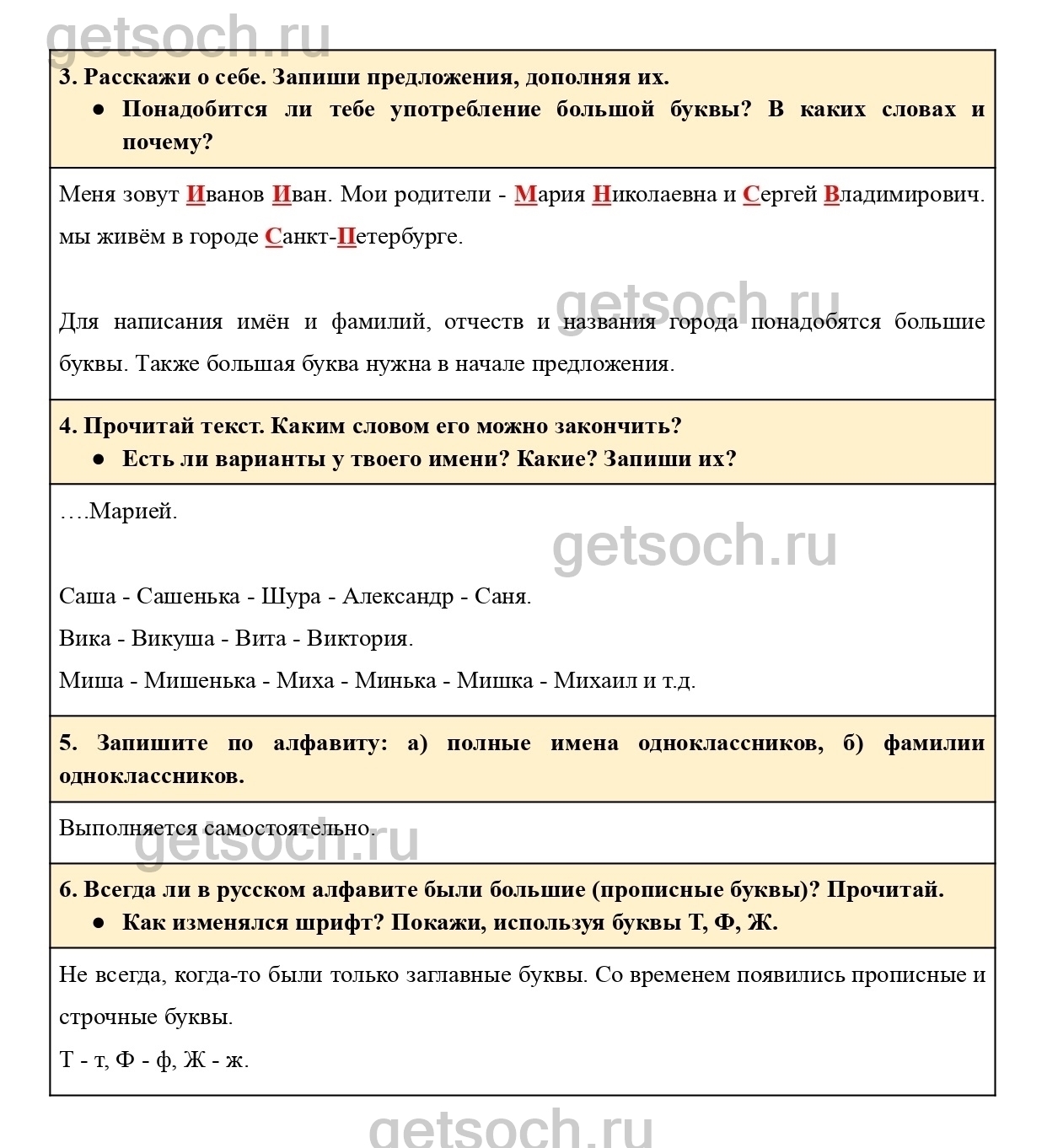 5. Запишите по алфавиту: а) полные имена одноклассников, б) фамилии одноклассников.