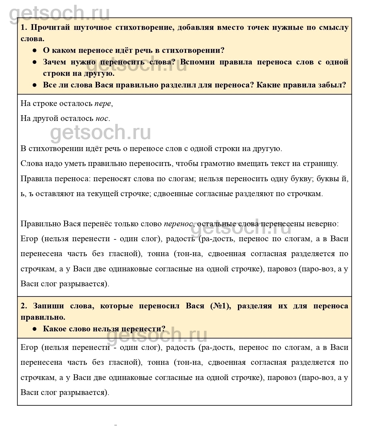 “2. Запиши слова, которые переносил Вася (№1), разделяя их для переноса правильно.