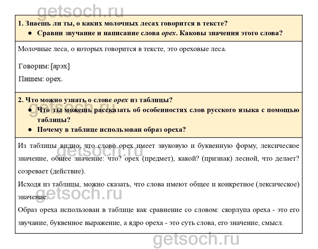 Сравни звучание и написание слова орех. Каковы значения этого слова?”