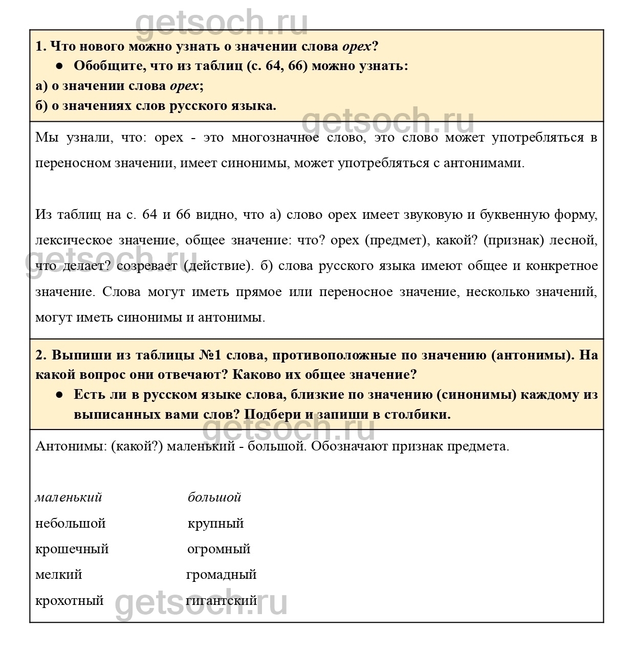 Рассмотрим ответы на Страница 66 из учебника по русскому языку для 2 класса Желтовской