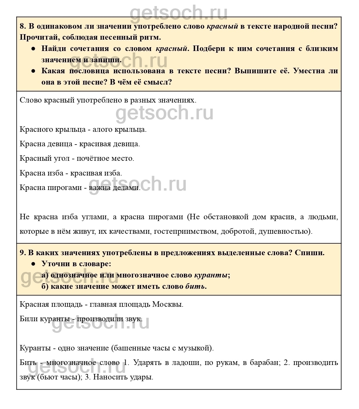 “8. В одинаковом ли значении употреблено слово красный в тексте народной песни? Прочитай, соблюдая песенный ритм.