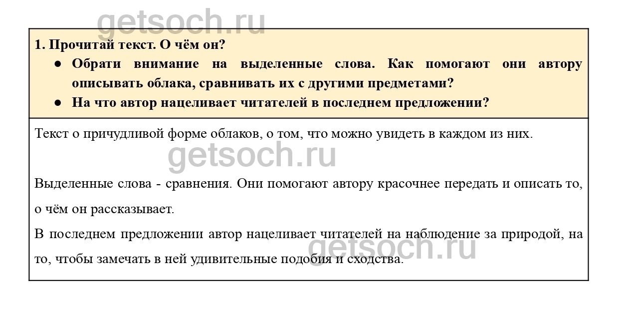 Обрати внимание на выделенные слова. Как помогают они автору описывать облака, сравнивать их с другими предметами?