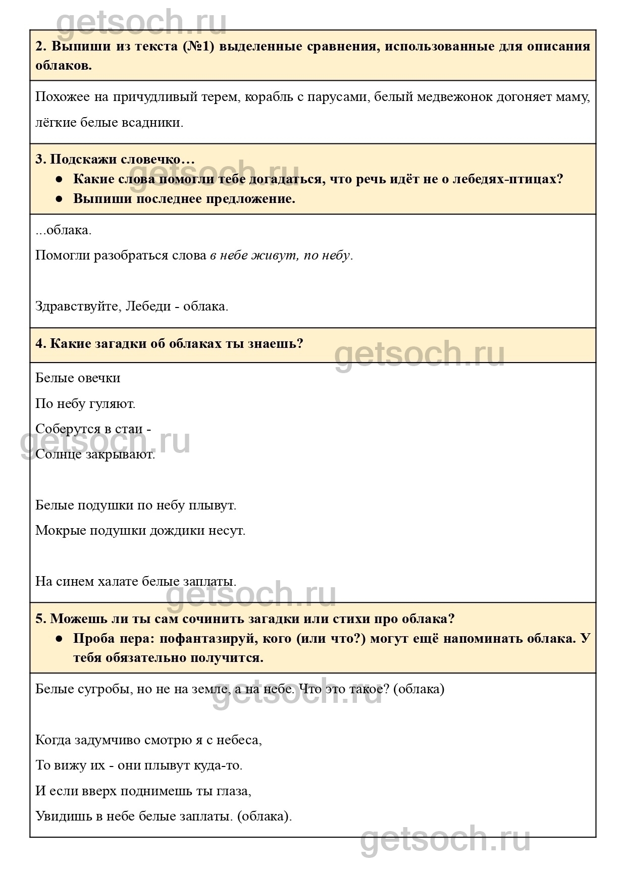 2. Выпиши из текста (№1) выделенные сравнения, использованные для описания облаков.