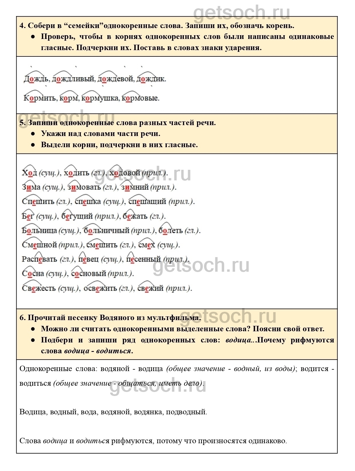“4. Собери в “семейки”однокоренные слова. Запиши их, обозначь корень.