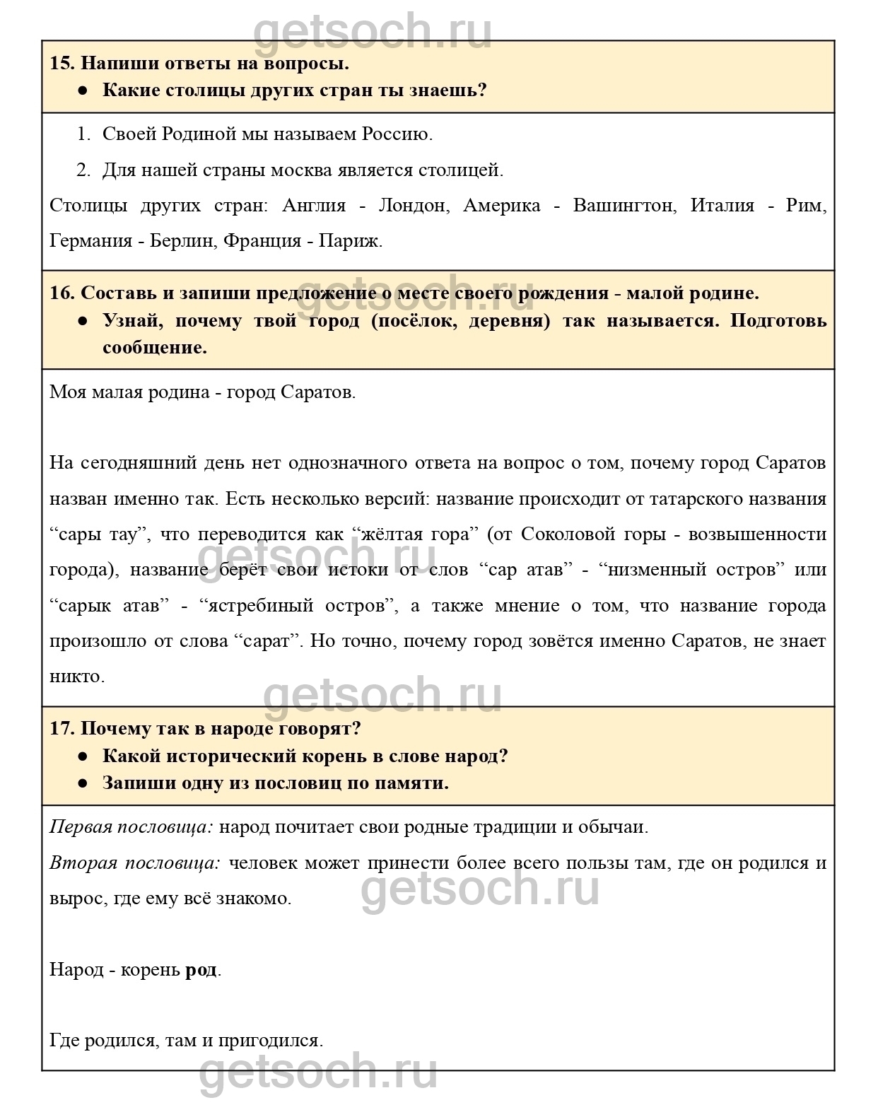 “16. Составь и запиши предложение о месте своего рождения – малой родине.