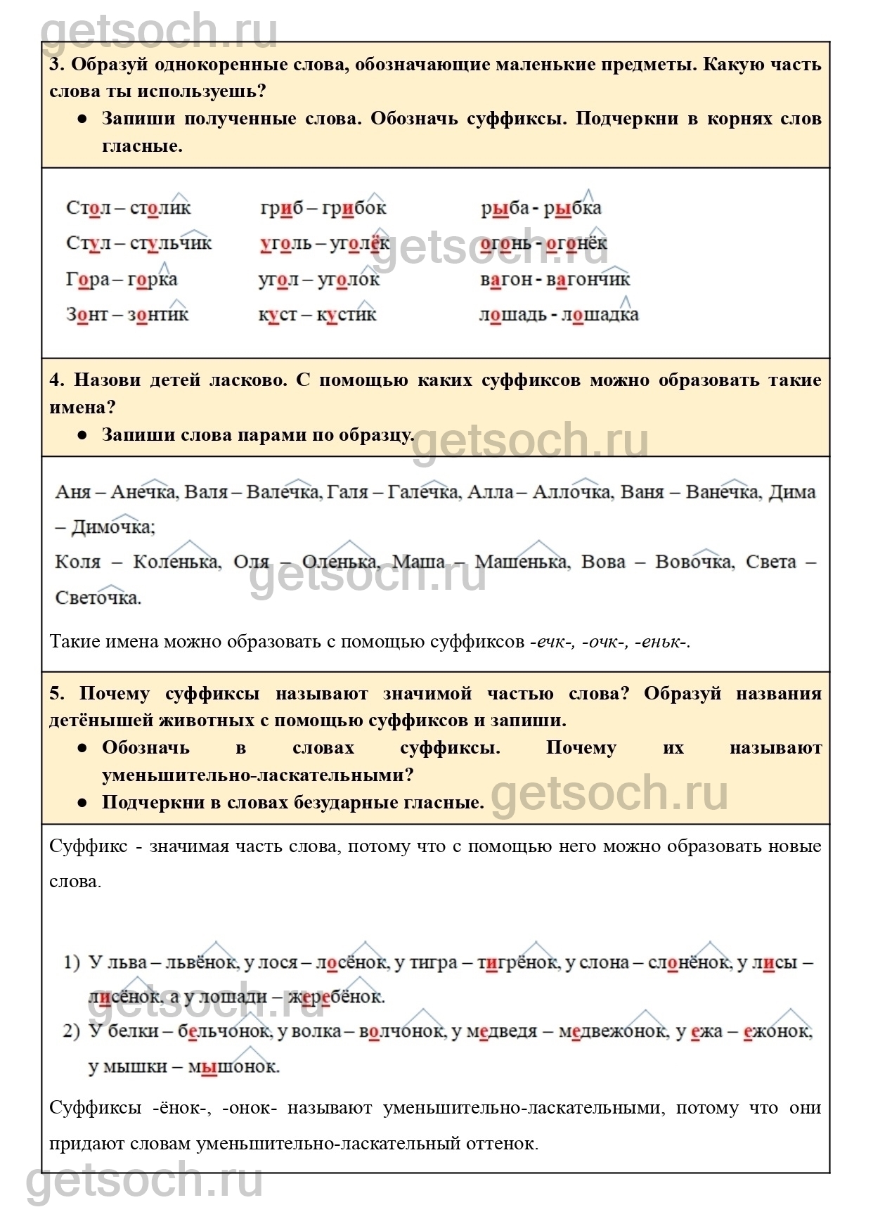 “5. Почему суффиксы называют значимой частью слова? Образуй названия детёнышей животных с помощью суффиксов и запиши.