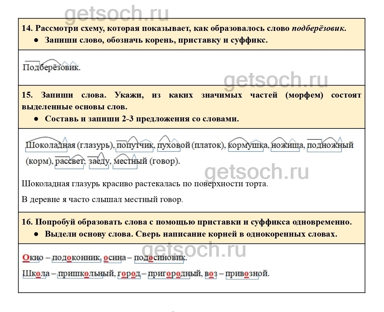“16. Попробуй образовать слова с помощью приставки и суффикса одновременно.