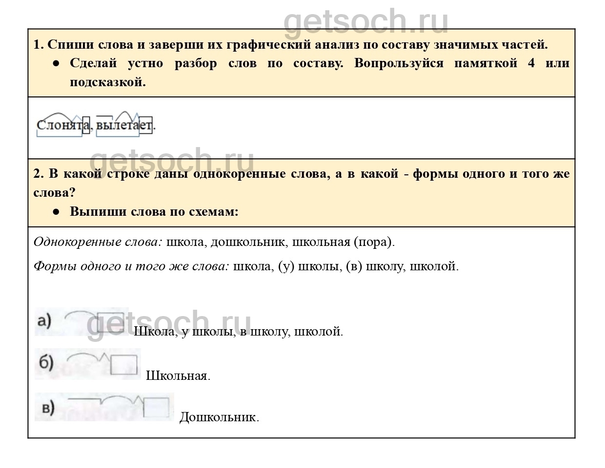 Сделай устно разбор слов по составу. Вопрользуйся памяткой 4 или подсказкой.”
