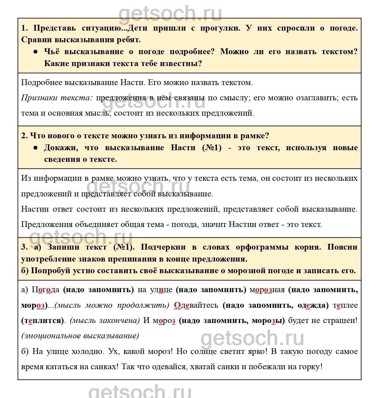 Чьё высказывание о погоде подробнее? Можно ли его назвать текстом? Какие признаки текста тебе известны?”