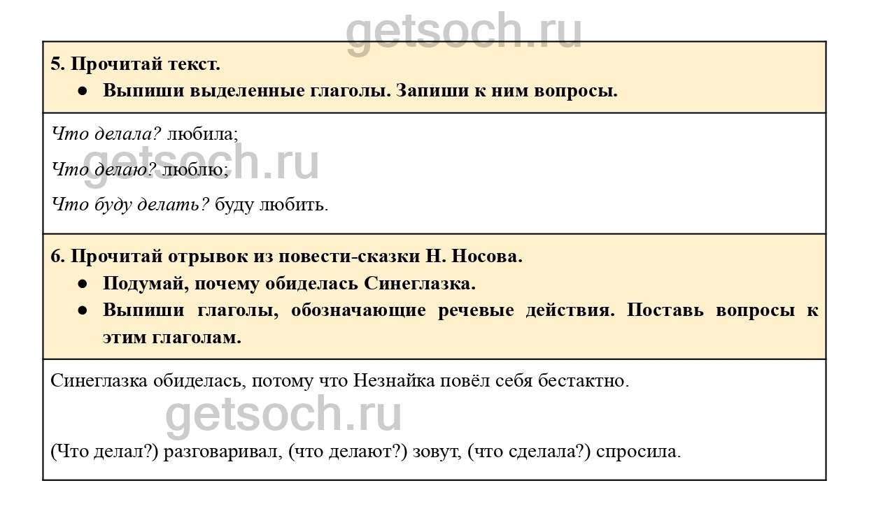 Выпиши выделенные глаголы. Запиши к ним вопросы.”