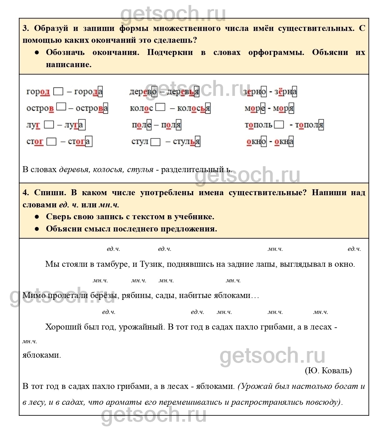 “4. Спиши. В каком числе употреблены имена существительные? Напиши над словами ед. ч. или мн.ч.