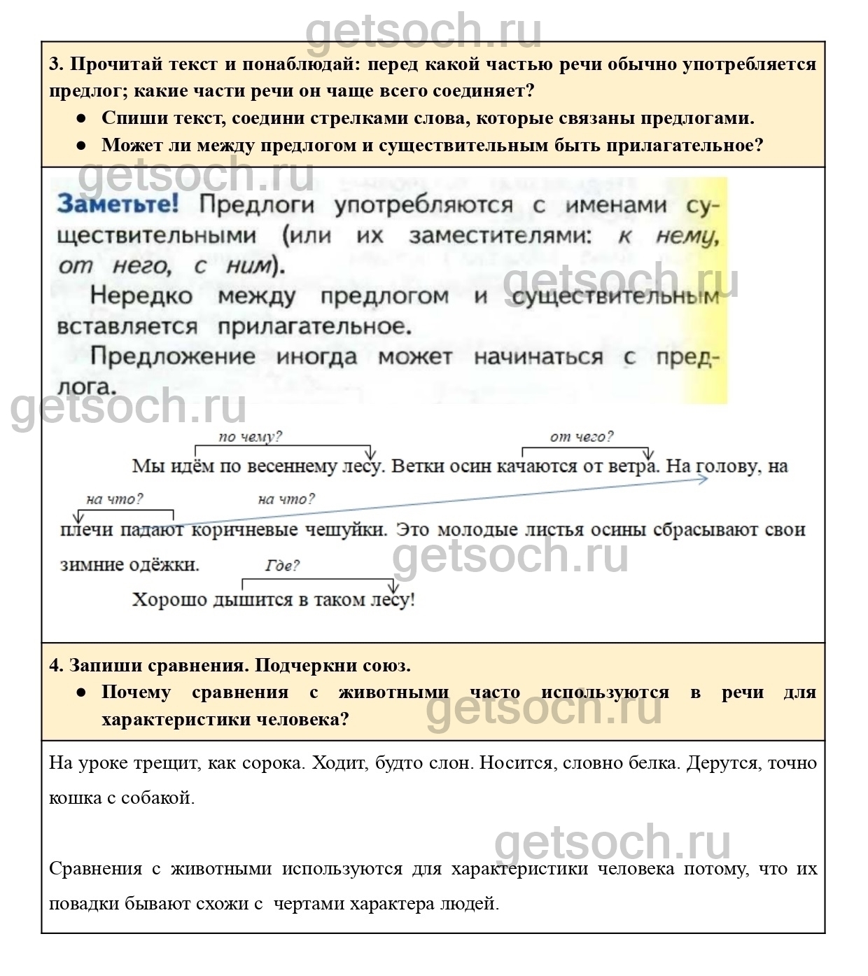 “3. Прочитай текст и понаблюдай: перед какой частью речи обычно употребляется предлог; какие части речи он чаще всего соединяет?