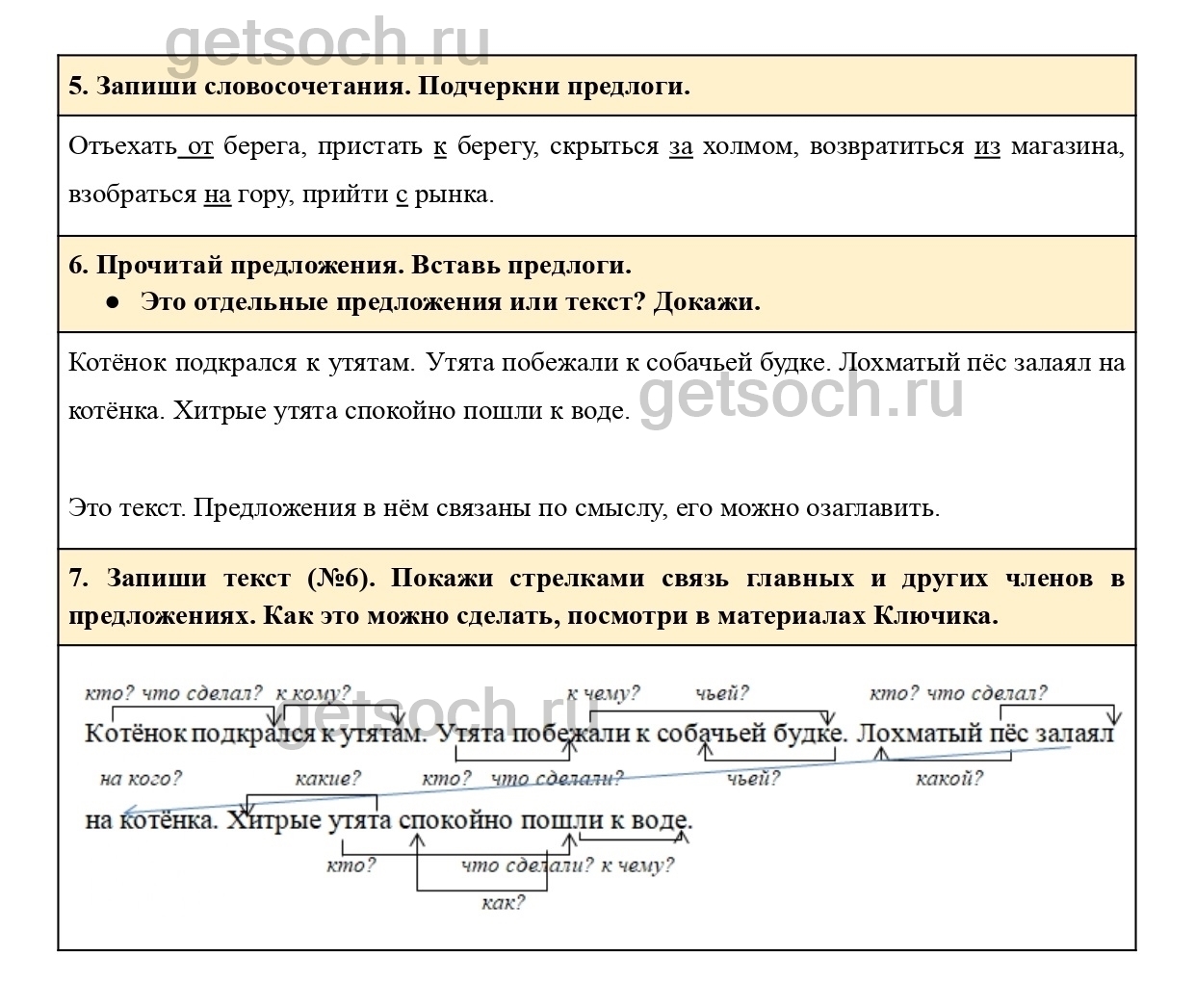 7. Запиши текст (№6). Покажи стрелками связь главных и других членов в предложениях. Как это можно сделать, посмотри в материалах Ключика.