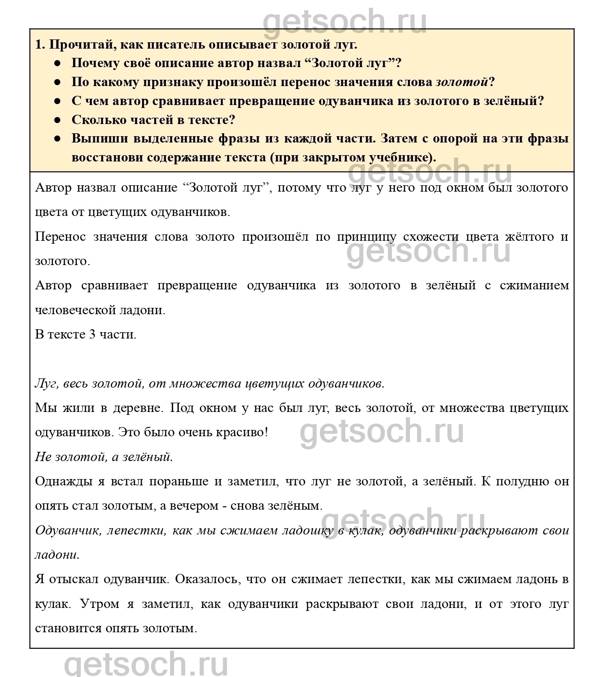 “1. Прочитай, как писатель описывает золотой луг.