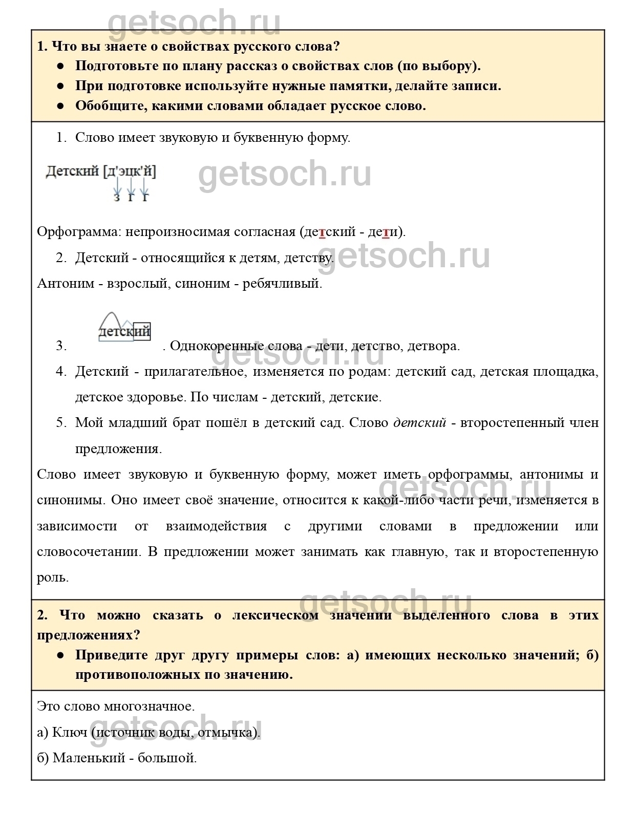Подготовьте по плану рассказ о свойствах слов (по выбору).