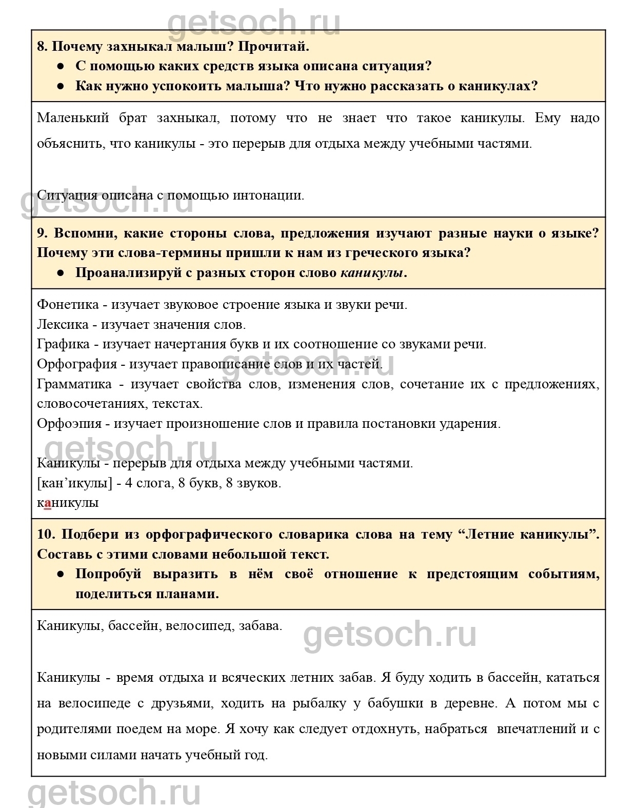 “10. Подбери из орфографического словарика слова на тему “Летние каникулы”. Составь с этими словами небольшой текст.