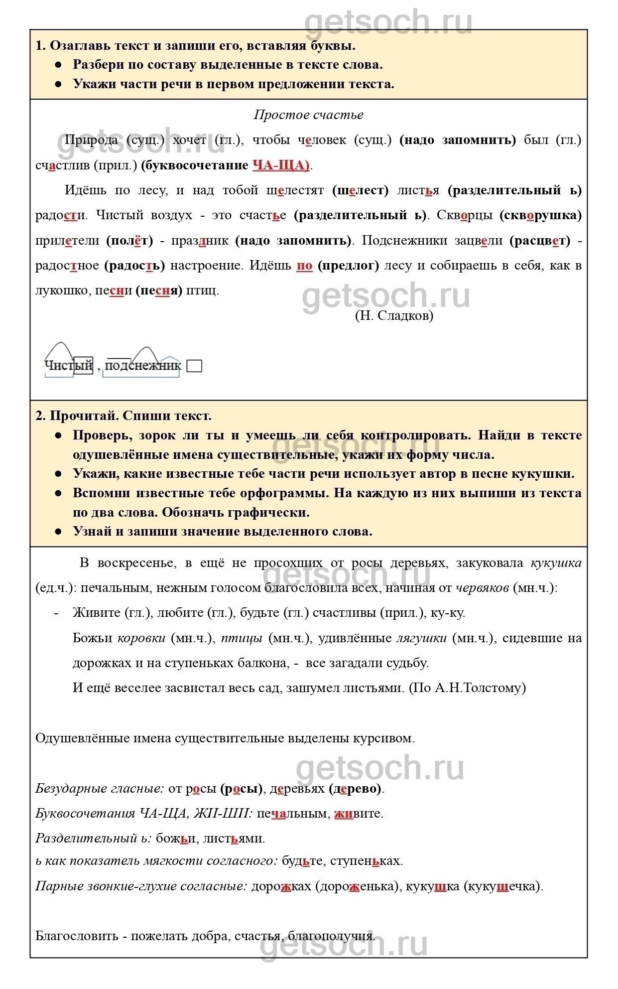 “1. Озаглавь текст и запиши его, вставляя буквы.
