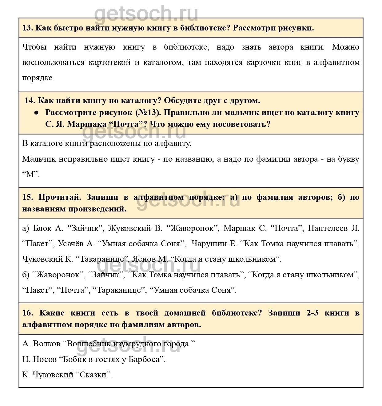 13. Как быстро найти нужную книгу в библиотеке? Рассмотри рисунки.