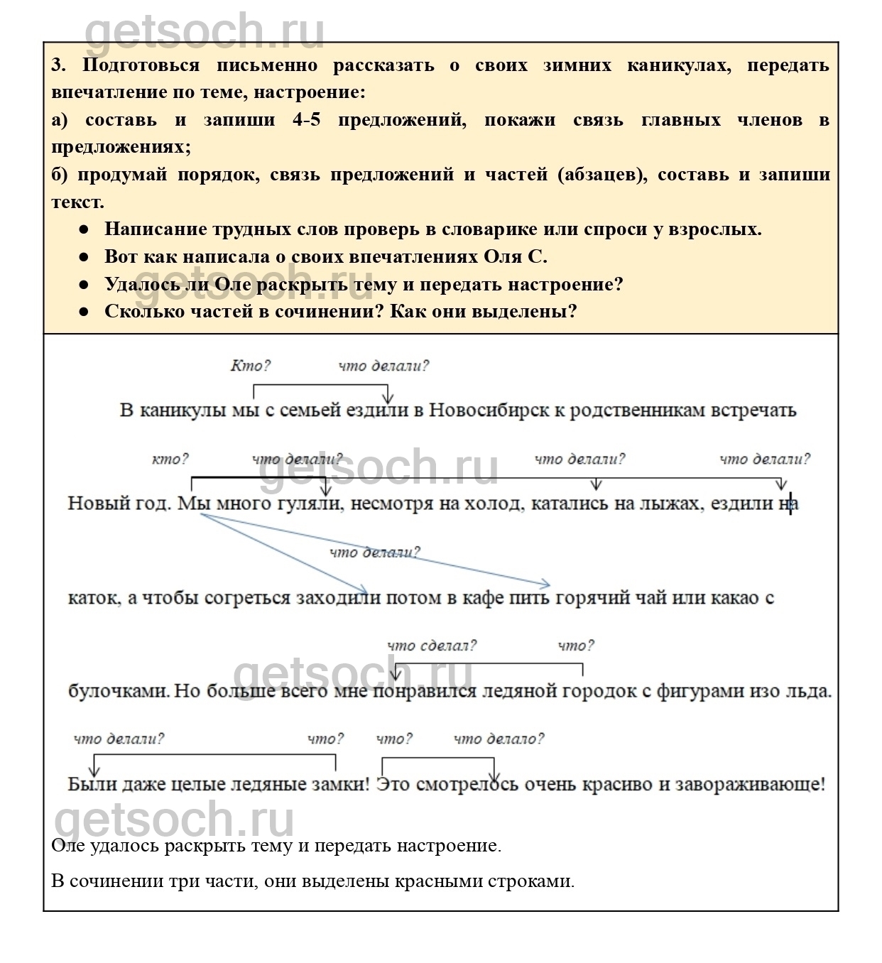 “3. Подготовься письменно рассказать о своих зимних каникулах, передать впечатление по теме, настроение: