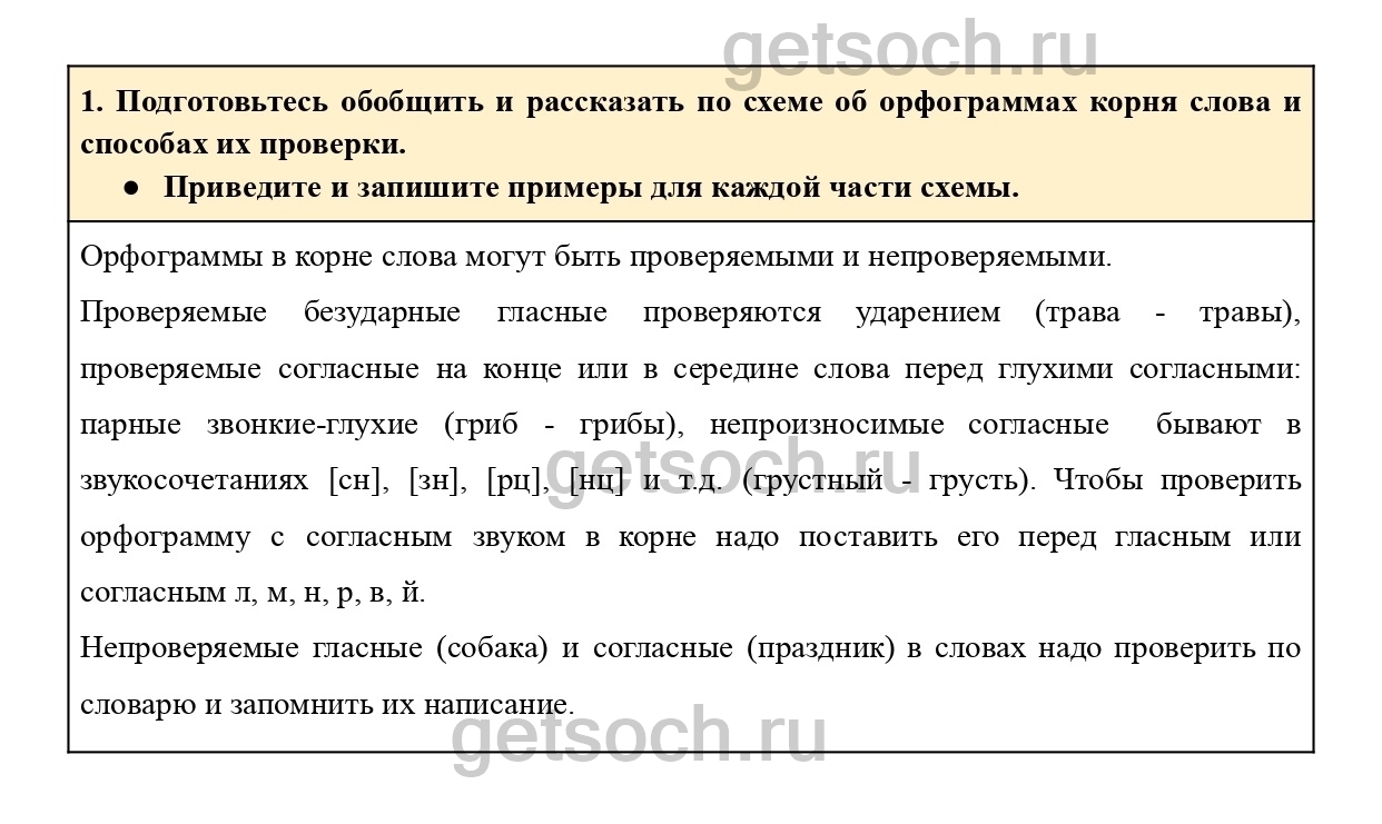 1. Подготовьтесь обобщить и рассказать по схеме об орфограммах корня слова и способах их проверки.