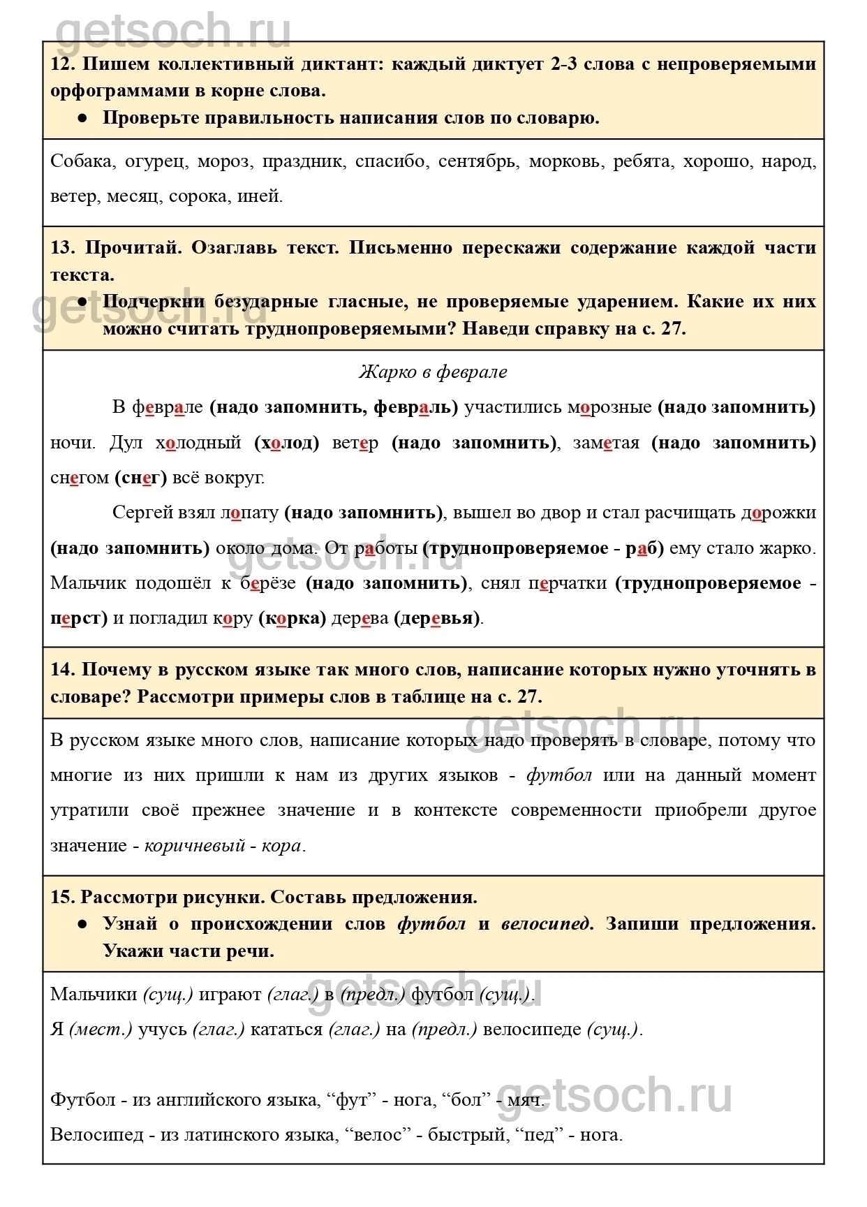 14. Почему в русском языке так много слов, написание которых нужно уточнять в словаре? Рассмотри примеры слов в таблице на с. 27.