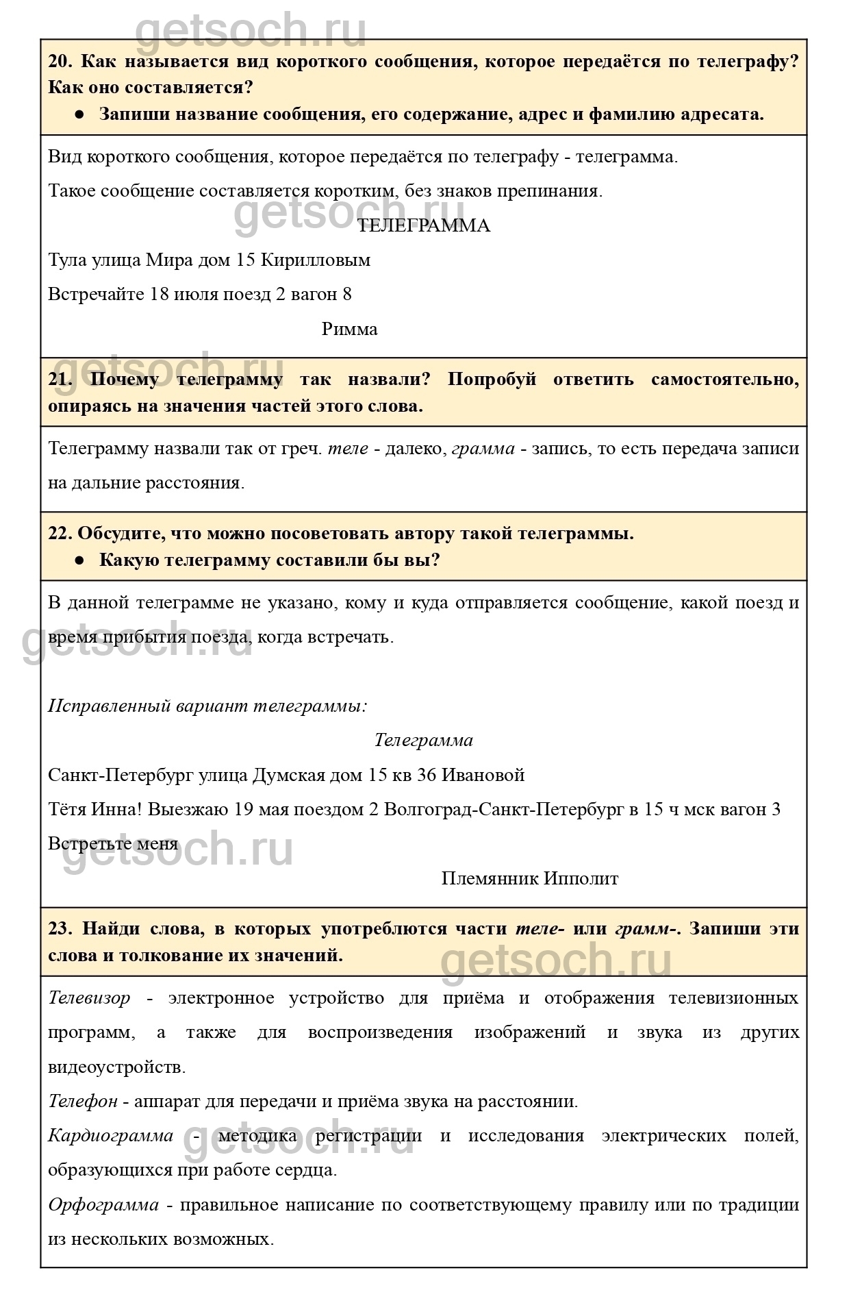 21. Почему телеграмму так назвали? Попробуй ответить самостоятельно, опираясь на значения частей этого слова.