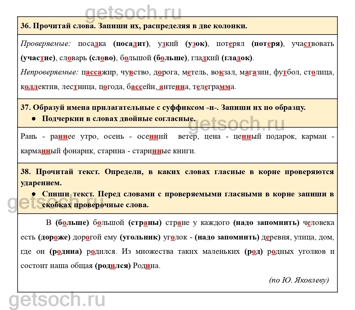 “38. Прочитай текст. Определи, в каких словах гласные в корне проверяются ударением.