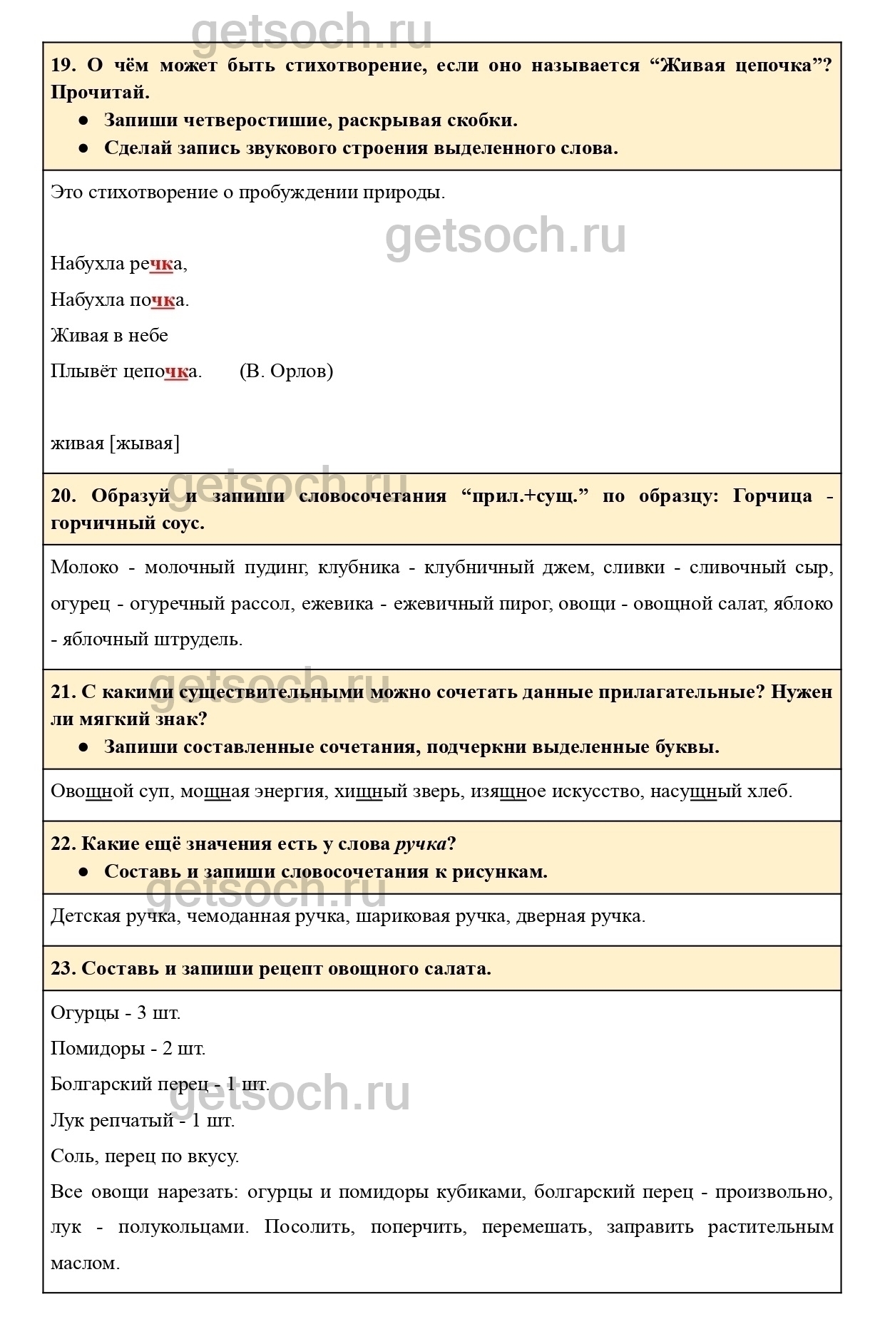 23. Составь и запиши рецепт овощного салата.