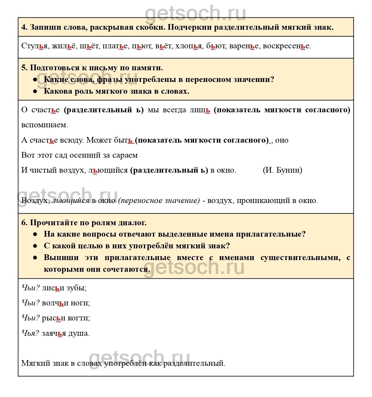 4. Запиши слова, раскрывая скобки. Подчеркни разделительный мягкий знак.
