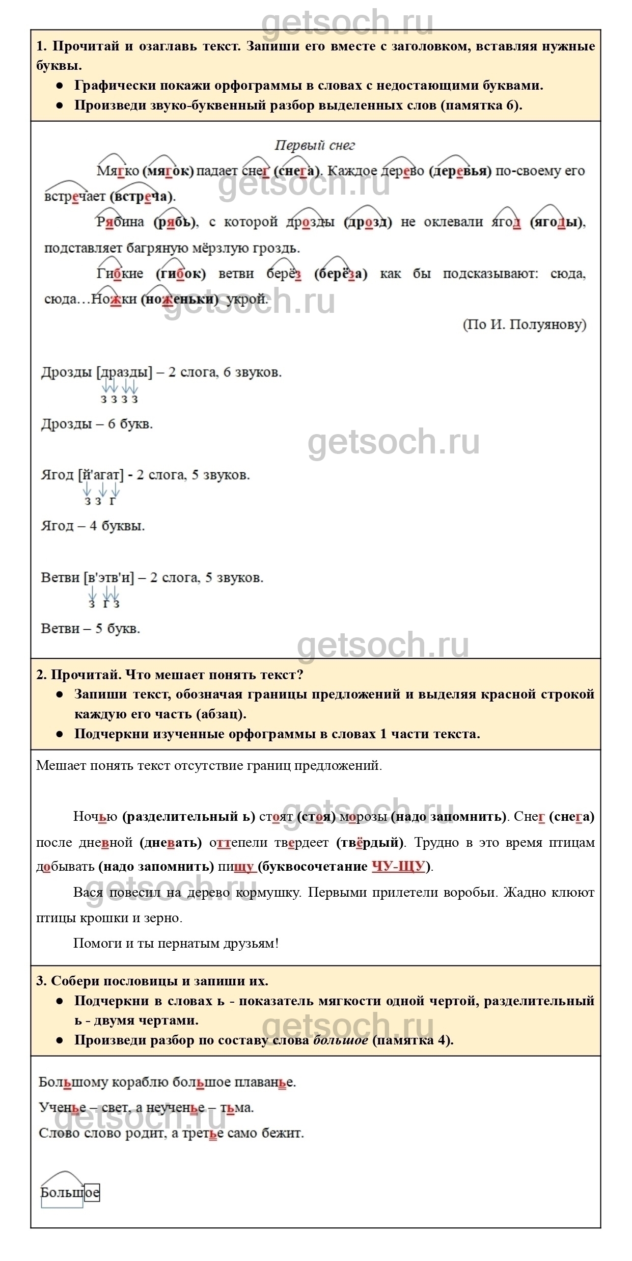 Произведи звуко-буквенный разбор выделенных слов (памятка 6).”