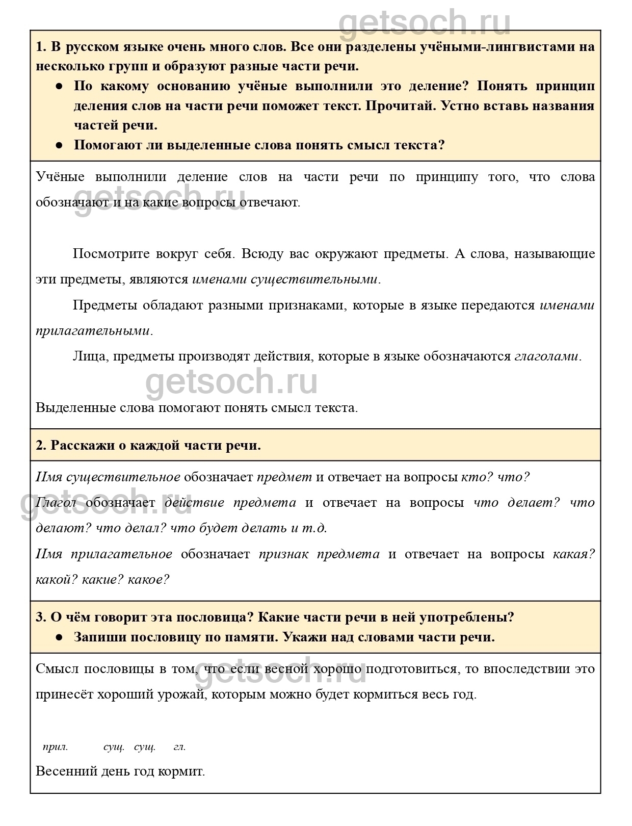 2. Расскажи о каждой части речи.