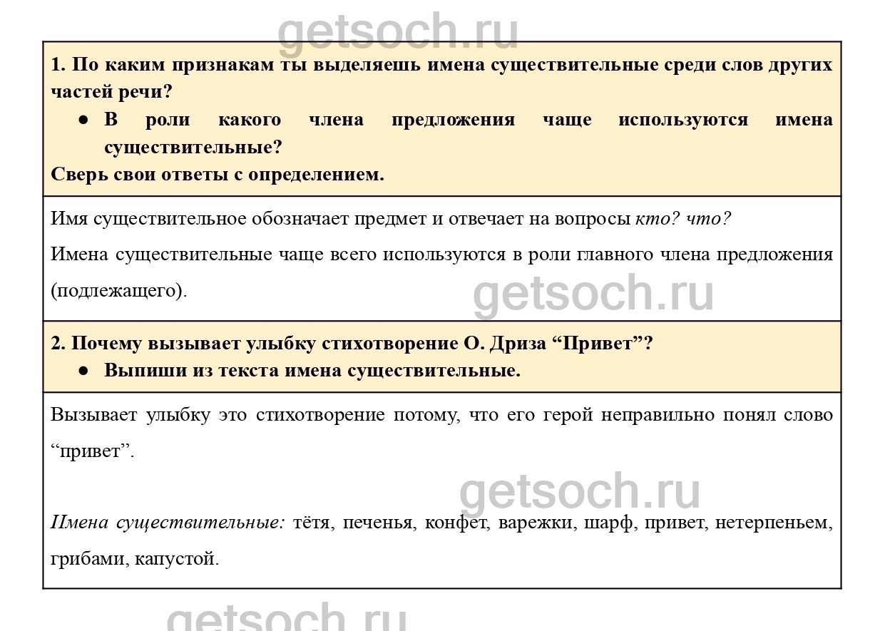 “1. По каким признакам ты выделяешь имена существительные среди слов других частей речи?
