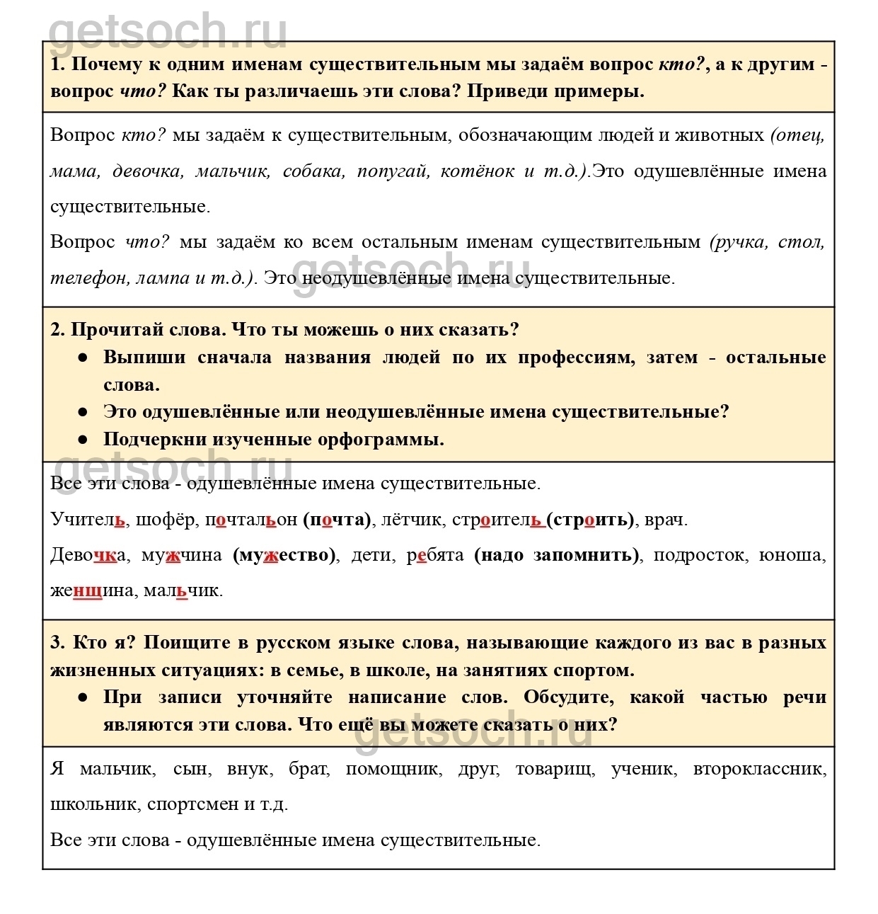 1. Почему к одним именам существительным мы задаём вопрос кто?, а к другим – вопрос что? Как ты различаешь эти слова? Приведи примеры.