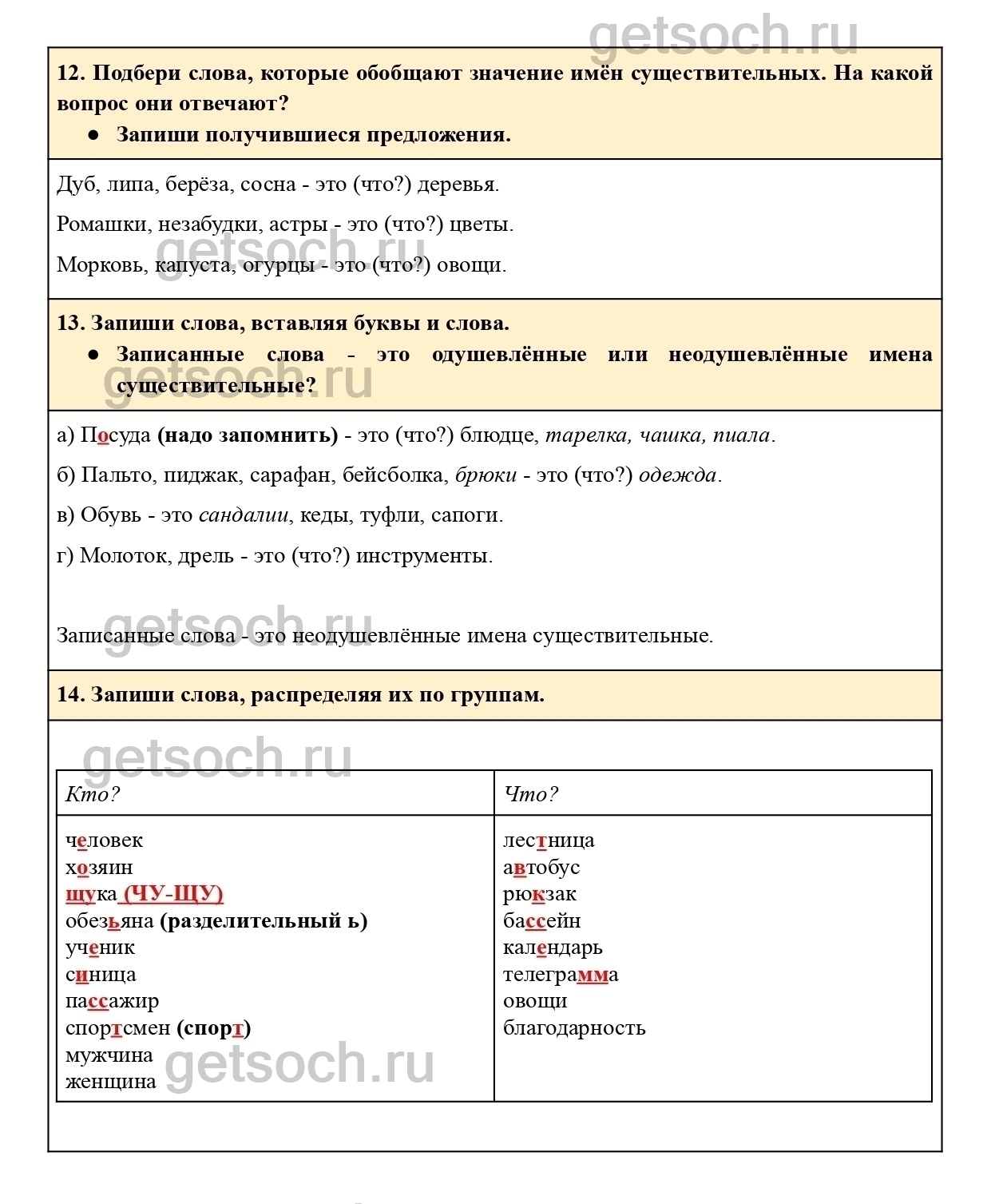 14. Запиши слова, распределяя их по группам.