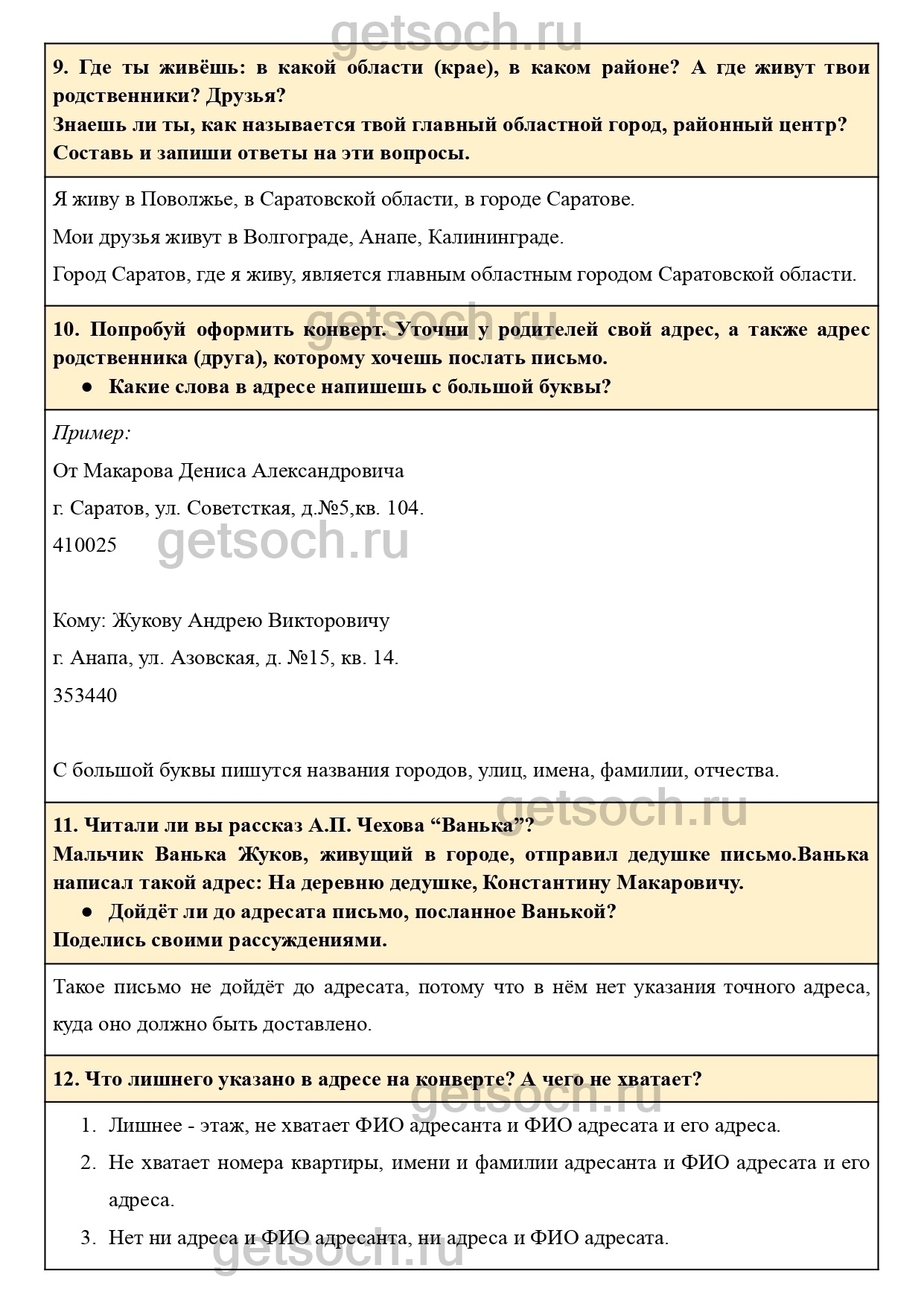 “10. Попробуй оформить конверт. Уточни у родителей свой адрес, а также адрес родственника (друга), которому хочешь послать письмо.
