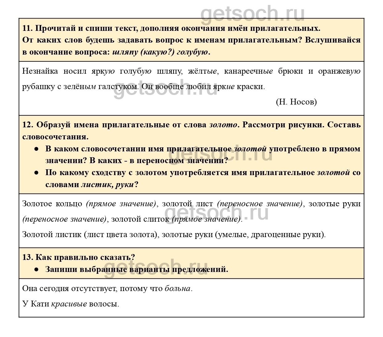 “12. Образуй имена прилагательные от слова золото. Рассмотри рисунки. Составь словосочетания.