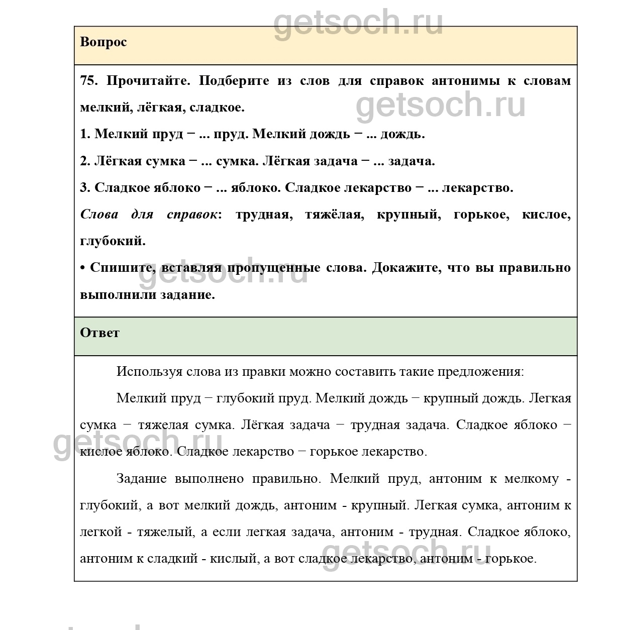 Упражнение 75— ГДЗ по Русскому языку 2 класс Учебник Канакина. Часть 1