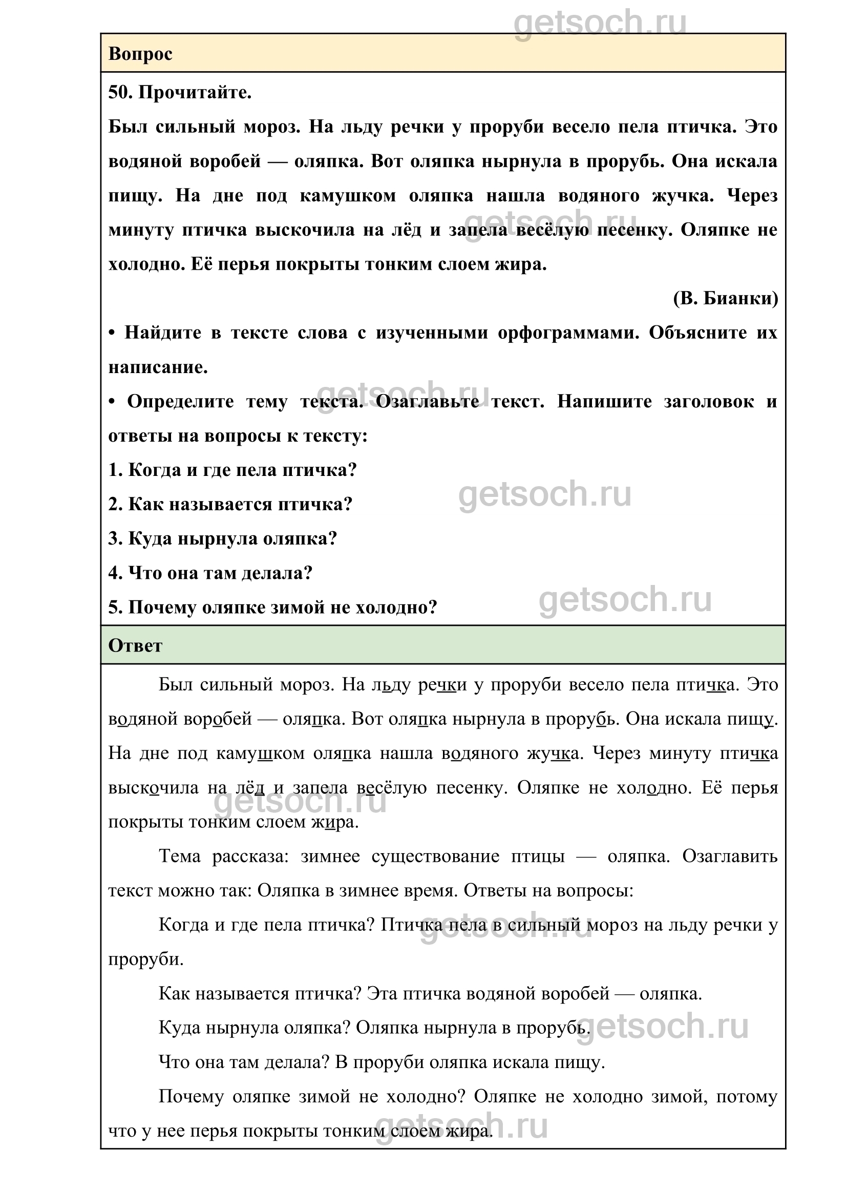 Упражнение 50— ГДЗ по Русскому языку 2 класс Учебник Канакина. Часть 2