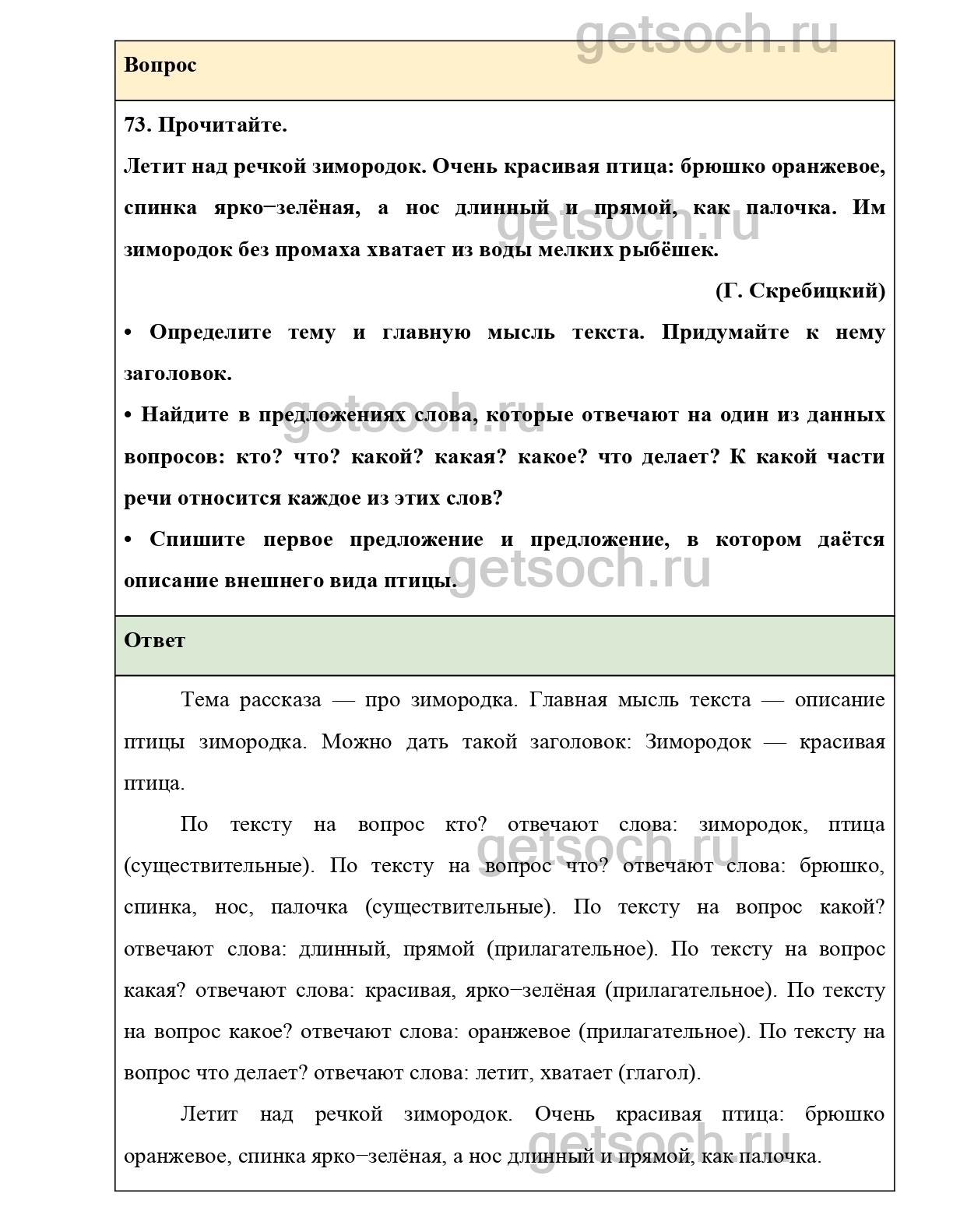 Упражнение 73— ГДЗ по Русскому языку 2 класс Учебник Канакина. Часть 2