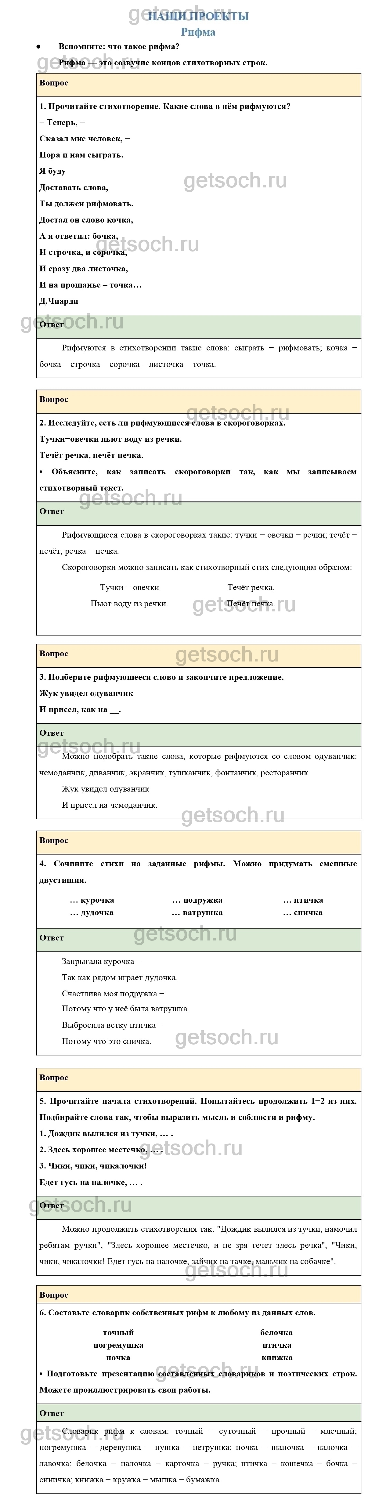 НАШИ ПРОЕКТЫ В словари за частями речи— ГДЗ по Русскому языку 2 класс Учебник Канакина. Часть 2