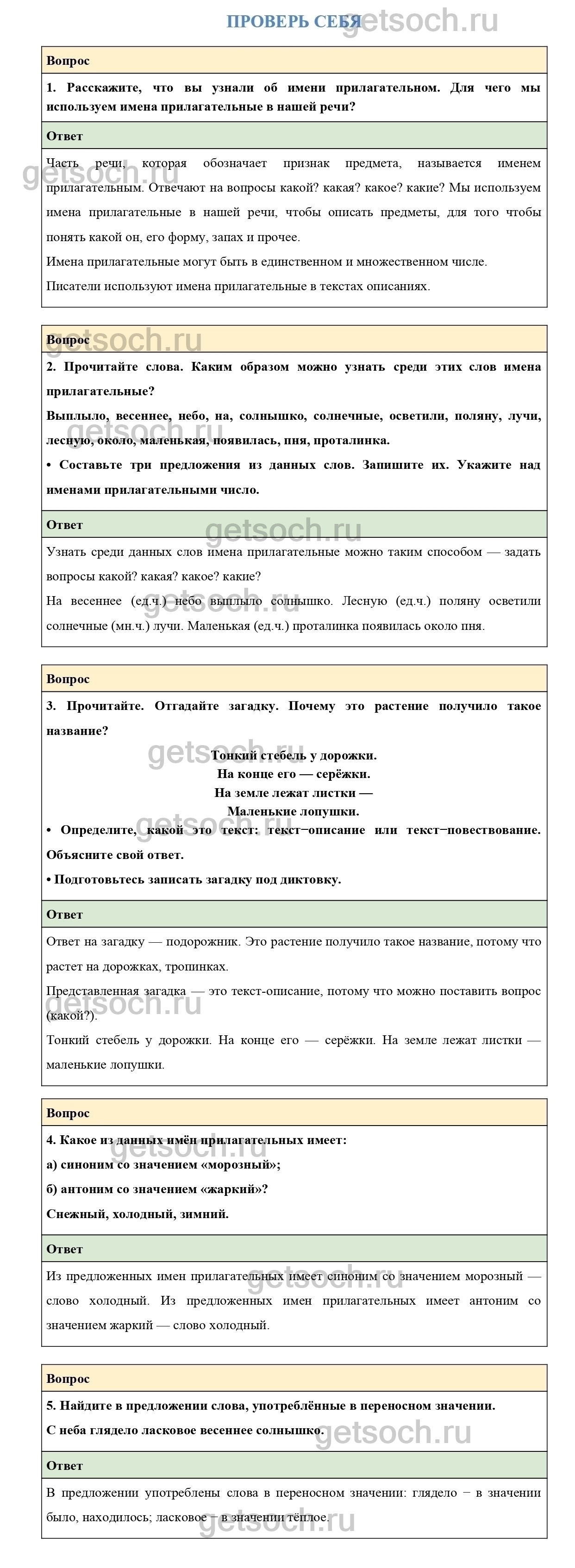 Проверь себя 6— ГДЗ по Русскому языку 2 класс Учебник Канакина. Часть 2
