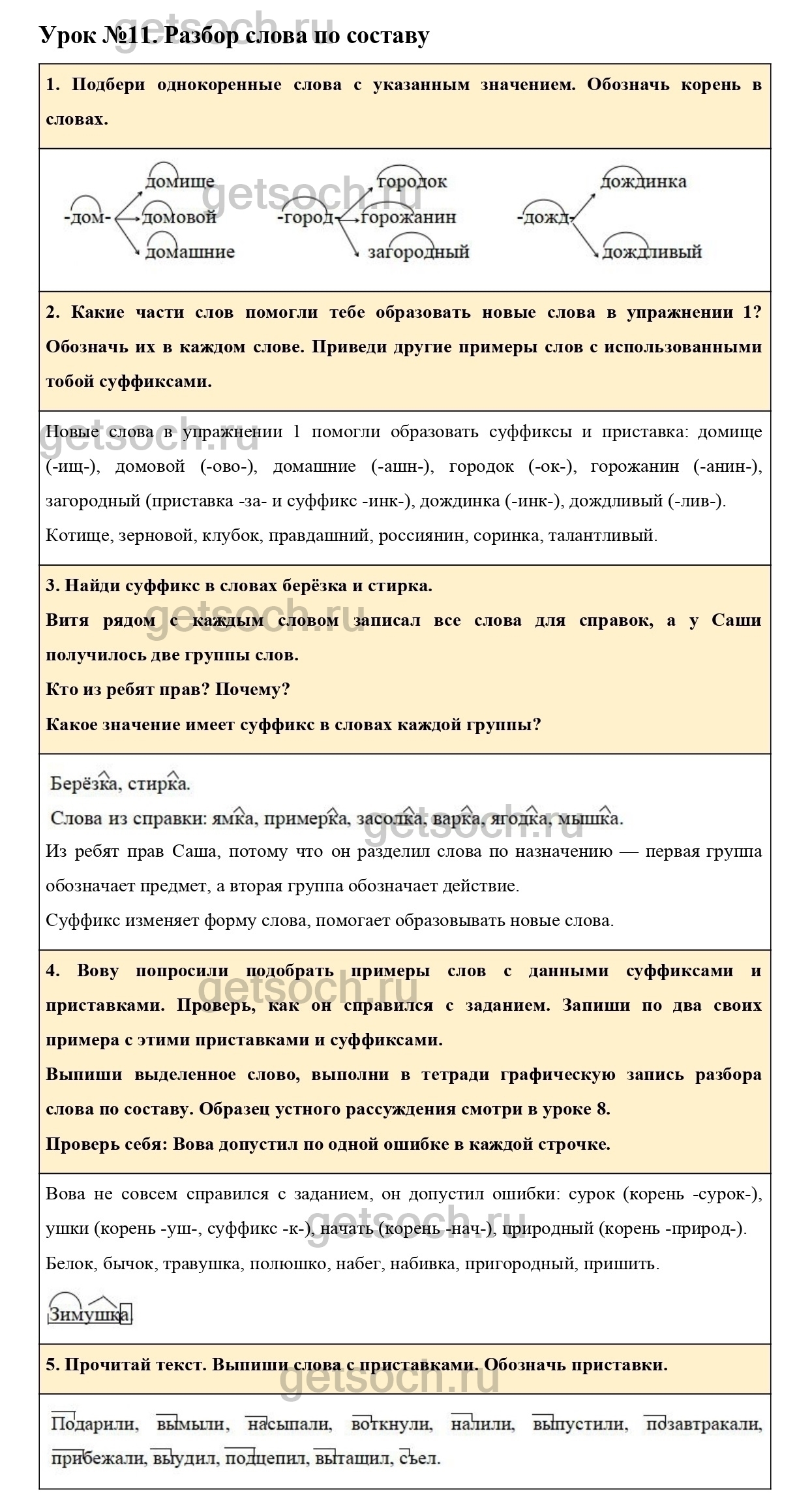 Рассмотрим ответы на Урок №11 из учебника по русскому языку для 3 класса Иванова