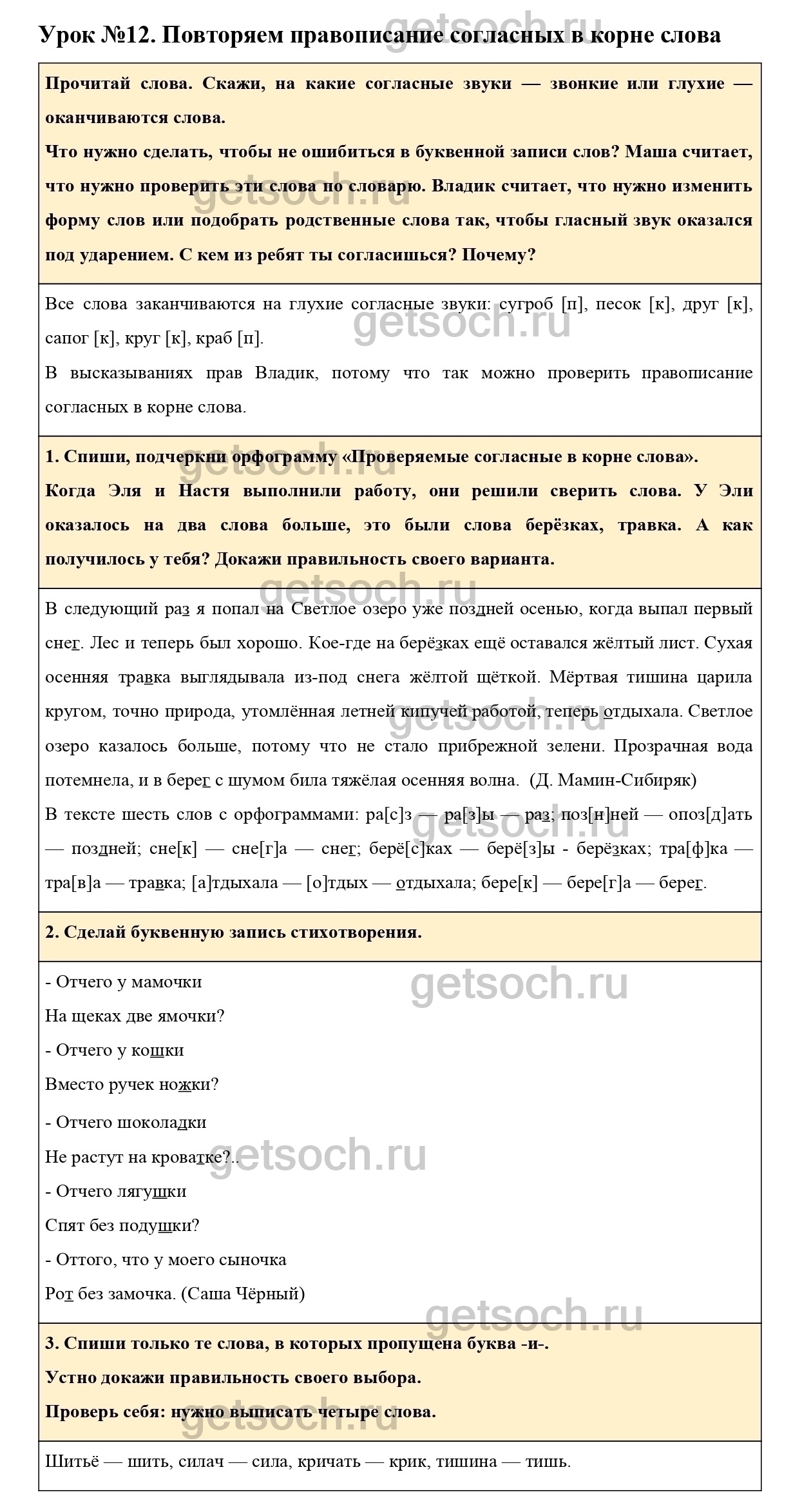 Рассмотрим ответы на Урок №12 из учебника по русскому языку для 3 класса Иванова