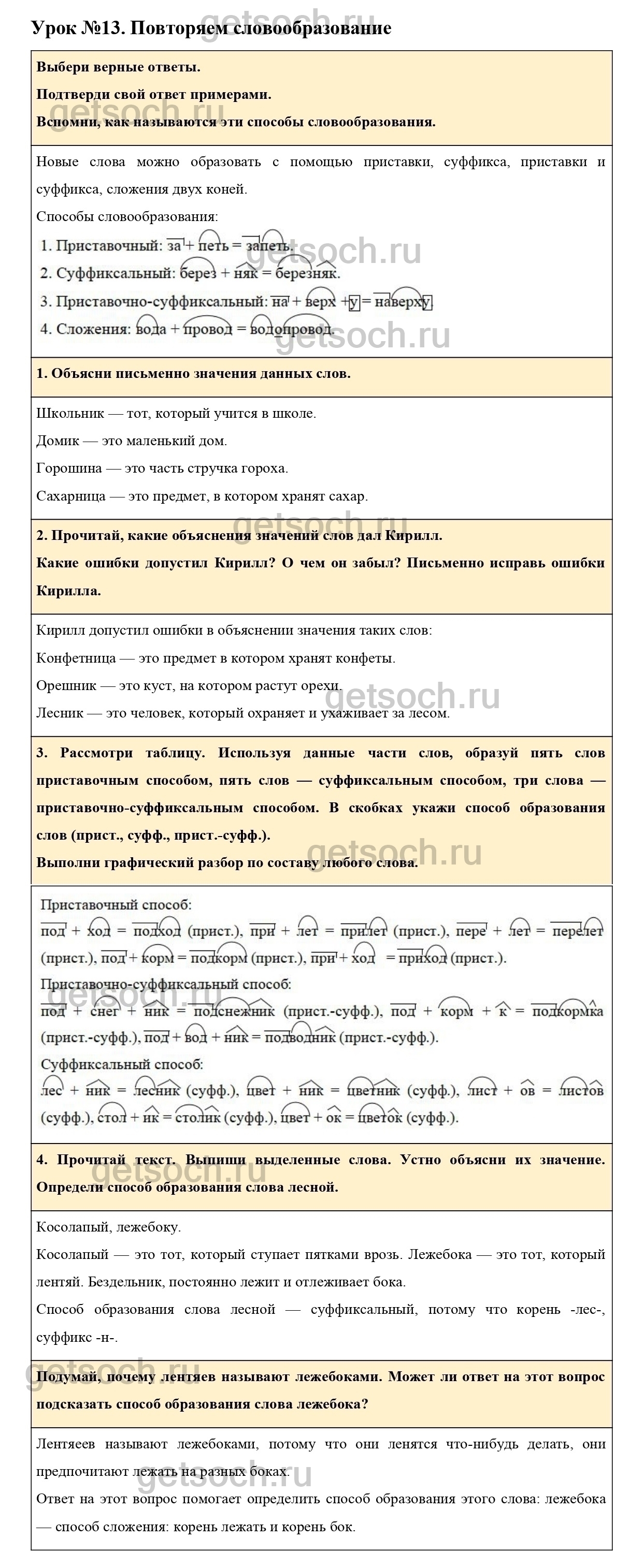 Рассмотрим ответы на Урок №13 из учебника по русскому языку для 3 класса Иванова